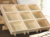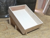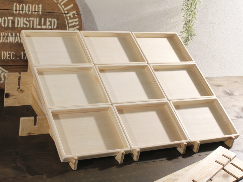 ↓下記のように溝が4本入ってますので多種木箱に対応できます。 木箱の大きさに合わせてレール幅を調整してください。 ![]() ↓傾斜台の数量と溝レール幅の調整で、木箱との多彩な組合わせが実現♪ 木箱の青い文字をクリックすると、木箱の販売ページに飛びます。用途に合わせて木箱をご利用ください。 写真をクリックすれば拡大画像が表示されます。